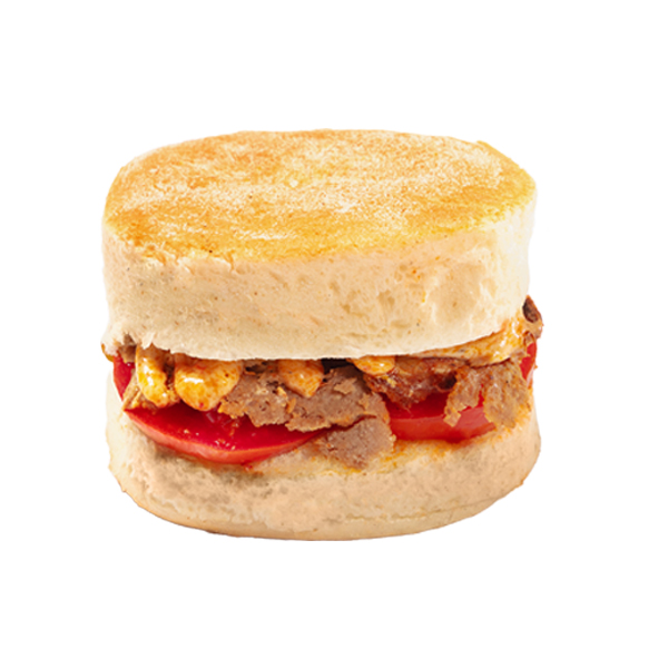 دونر گوشت، کاهو فرانسه، گوجه، میکس سبزیجات، نان مافین