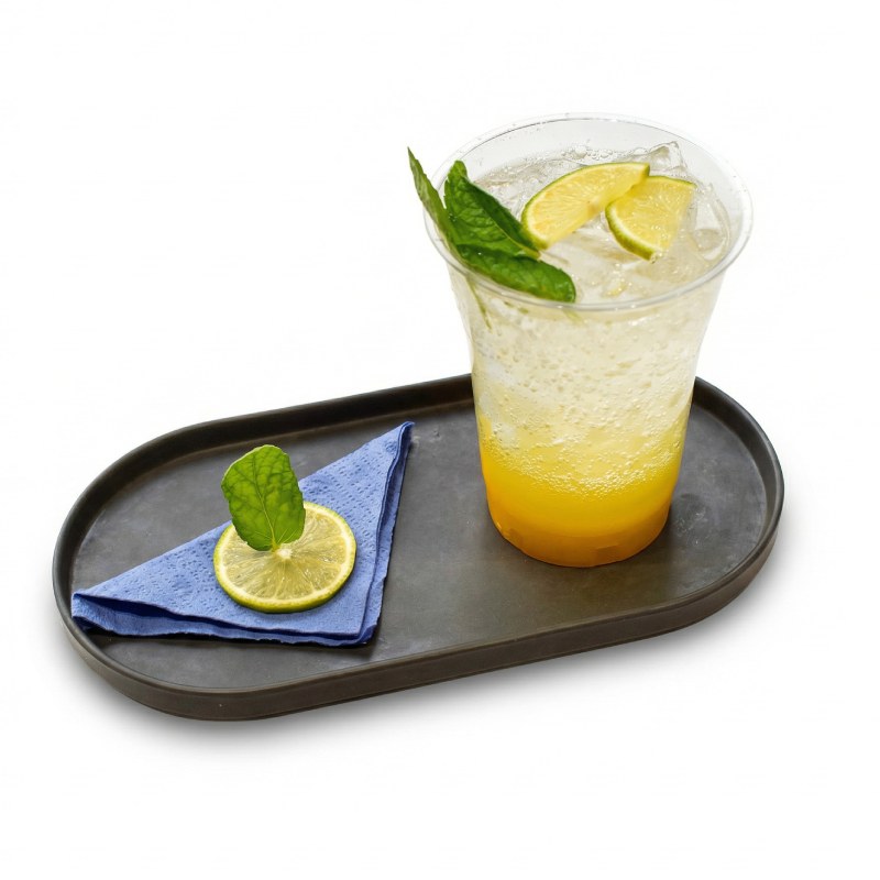 آب سودا لیمویی، نعنای تازه، اسلایس لیموی تازه، پورهی انبه، شیرین شده با استویا، حجم: ۳۰۰ میلیلیتر
