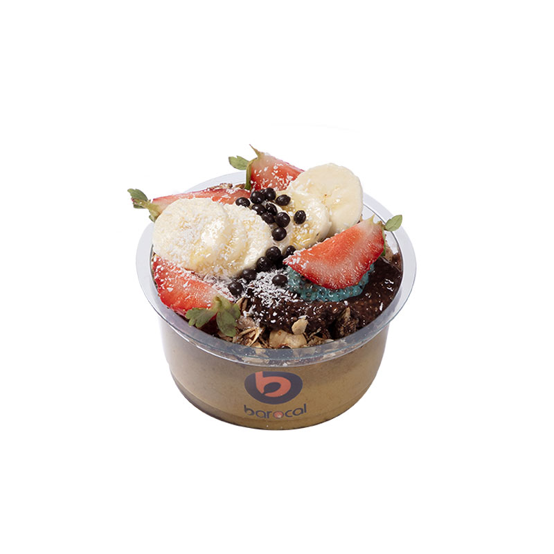 ۲۰۰ گرم، تهیه شده از گرانولا رژیمی و پوره میوه و گارنیش موز و توت فرنگی وگرانولا بادام عسلی ودانه چیا و پسته برشته