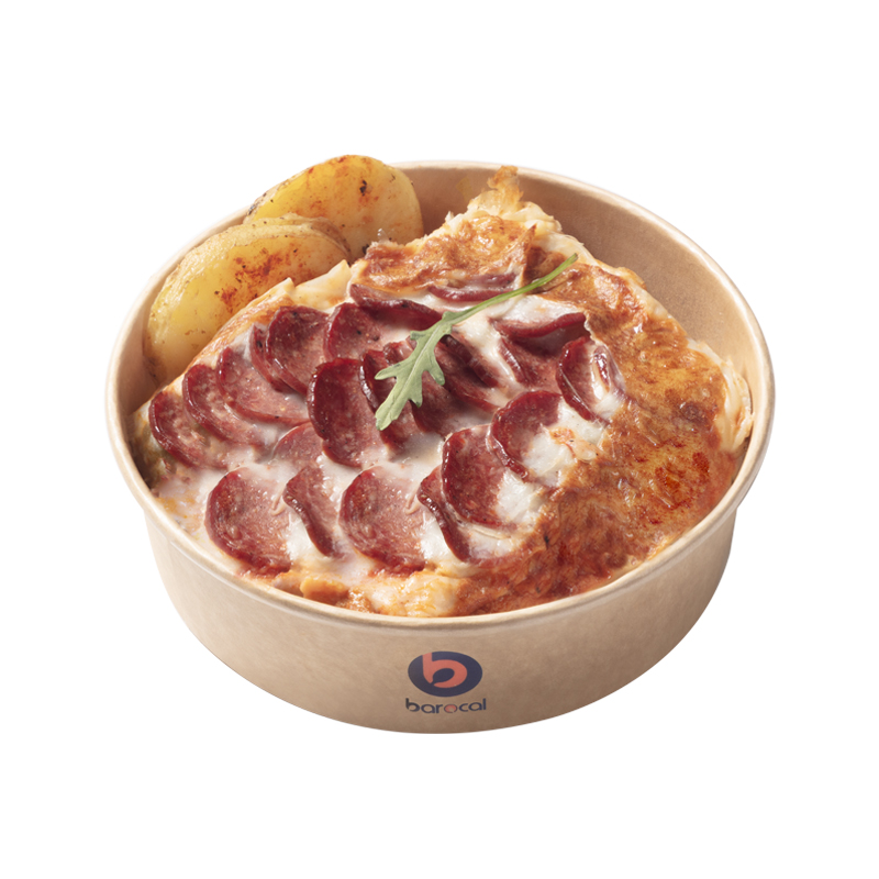 پیتزا پپرونی رژیمی تک اسلایس ابعاد 15*10 سانت تهیه شده از خمیر فوکاچا رژیمی و پنیر بدون چربی پپرونی تخمیری بدون چربی و سس سالسا رژیمی به همراه 50 گرم سیب زمینی تنوری