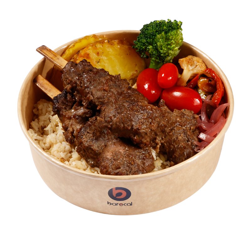 ۳ سیخ جوجه فسنجانی ۸۰ گرمی (جمعاً ۲۴۰ گرم)، ۲۰۰ گرم برنج قهوه‌ای، دورچین سیب زمینی تنوری، میکس سبزیجات ورچستر، بروکلی بلانچ، پیکل پیاز، زیتون، گوجه گیلاسی