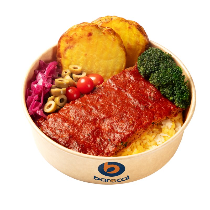 تهیه شده از 140 گرم کباب تابه ای، 200 گرم برنج زعفرانی، سیب زمینی تنوری، دورچین: زیتون، پیکل کلم قرمز، بروکلی بلانچ و گوجه گیلاسی